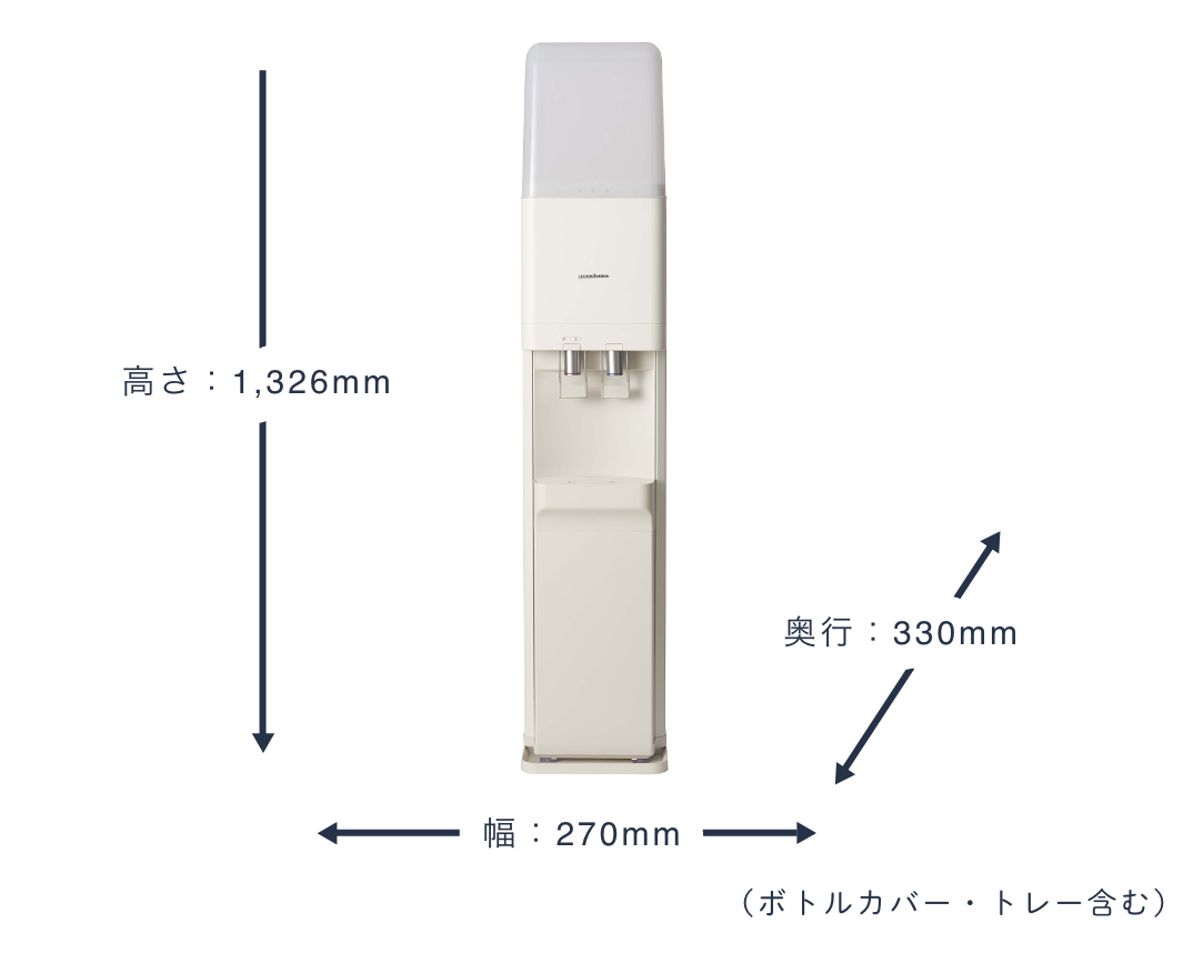 | サイズ | 高さ:1,326mm×幅:270mm×奥行:330mm(ボトルカバー・トレー含む) |