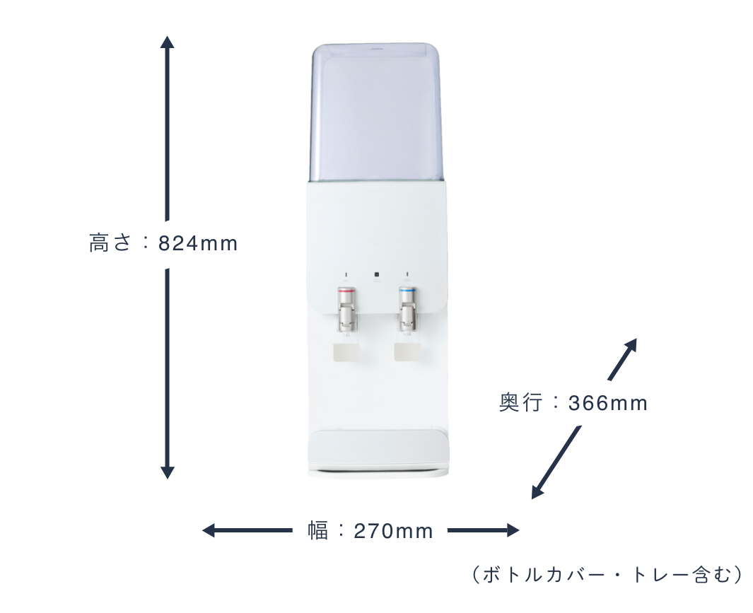 | サイズ | 高さ:824mm×幅:270mm×奥行:366mm (ボトルカバー・トレー含む) |